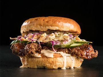 x2 Grilled Chicken Breast, Cajun Spice, Shredded Lettuce, Sliced Tomato, Red Onion, Lemon Mayo, Sesame Bun