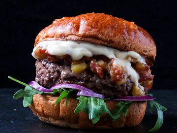 100% Beef Patty, Grilled Pineapple, Bacon Jam, Red Onion, Rocket, Truffle Mayo