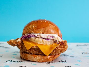 House Spiced Fried Chicken Breast, Pineapple, Cheddar Cheese, Slaw, Lemon Mayo, Sesame Bun